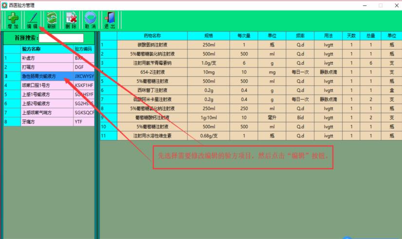 首先点击“西医验方”图标按钮,打开西医验方管理窗口。