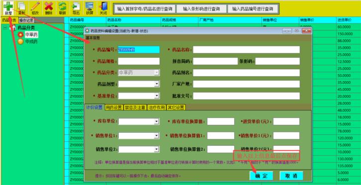 (一) 点击“药品维护”——进入“药品维护管理窗口”.![]() (二) 如何增加自己的药品。步骤如下: 首先点击增加按钮→然后在编辑框添加药物的名称、规格、基准单位、库存单位、库存单位换算值、进价、销售单位、销售单位换算值、售价、用法、用量、药品的作用和功效等(可选择性填写,红色字体为必填项)→最后点击保存按钮即可。 【注释】:换算值如何计算,换算值都是相当于基准单位来计算的。 例如:(1)如果基准单位克,库存单位是千克,那么1千克=1000克,那么库存单位换算值就是1000。(2)如果基准单位是片,安乃近是1瓶,如果1瓶是100片,那么1瓶=100片,那么库存单位的换算值就是100。(3)如果单位相同,例如:基准单位是克 ,库存单位也是克,那么1克=1克,那么库存单位的换算值就是1。销售单位的换算值的算法与库存单位换算值的算法同理。 首先在列表框选择你要删除的药物(可通过检索得到)——点击删除按钮即可完成,很简单。 |